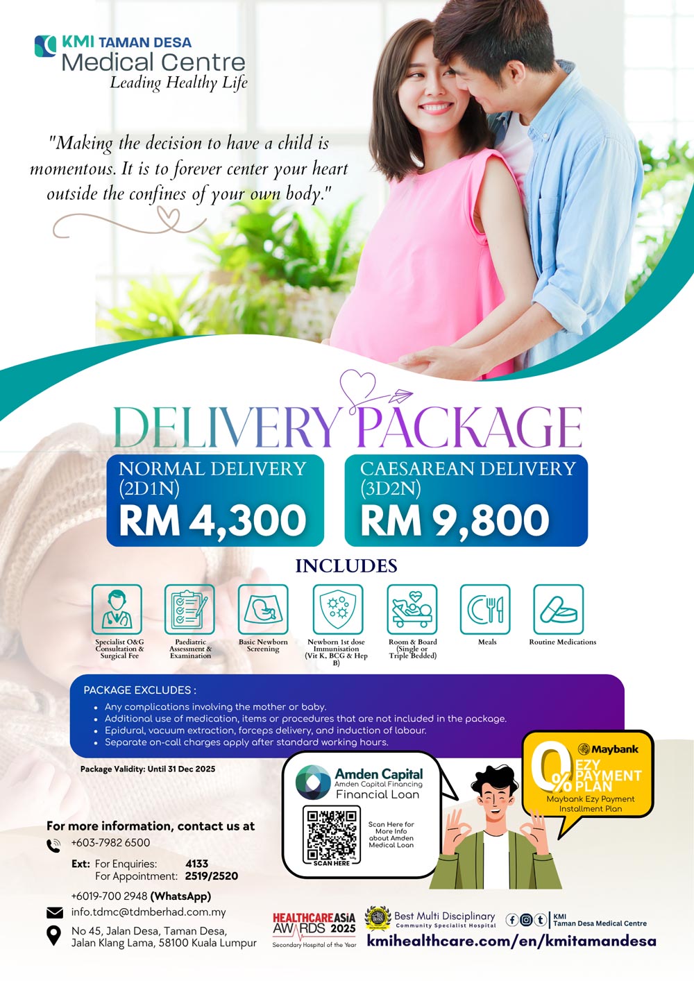 NORMAL DELIVERY (2D1N): RM 4,300.00